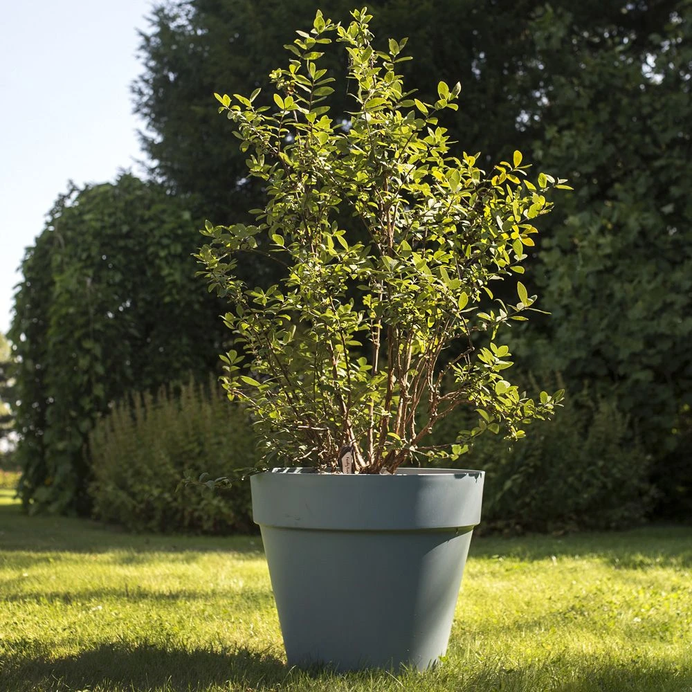 Très fructifère, il produit en mai-juin une abondance de petits fruits allongés violet noir à reflets pruineux bleus. Très facile à réussir, ce buisson compact pousse aussi bien en pleine terre qu’en bac et vous apportera tous ses bienfaits, quel que soit l’espace dont vous disposez !