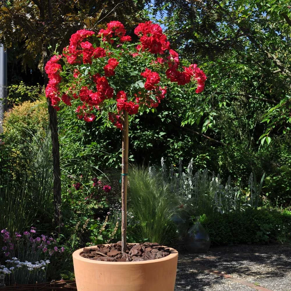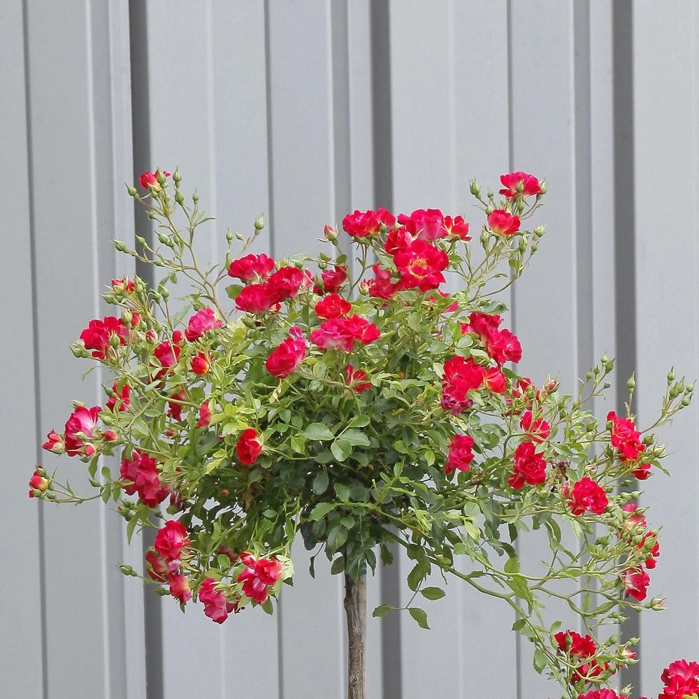 Un splendide rosier sur tige idéal pour les petits espaces, terrasses et balcons ! Le rosier demi-tige semi-retombant Red DRIFT ® Meigalpio est greffé sur une tige de 60/80 cm.