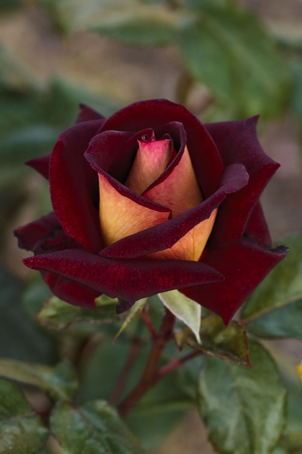 La plus « Rock’n Roll » des Roses Meilland. La rose EDDY MITCHELL ® Meirysett est absolument inédite avec ses pétales rouge foncé à reflets noirs dont le revers est jaune d’or. Le contraste est saisissant lorsque la rose est à demie épanouie !